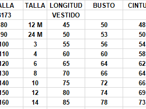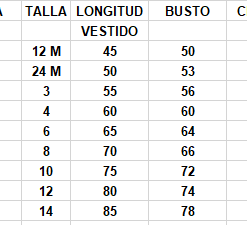 | Talla | 10 años, 12 años, 12 meses, 14 años, 18 meses, 2 años, 24 meses, 3 años, 4 años, 5 años, 6 años, 8 años, 10, 12, 14, 2, 4, 6, 8 |