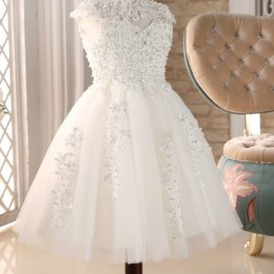 VESTIDO CORTO ALTA COSTURA CUELLO MAO SIN MANGA